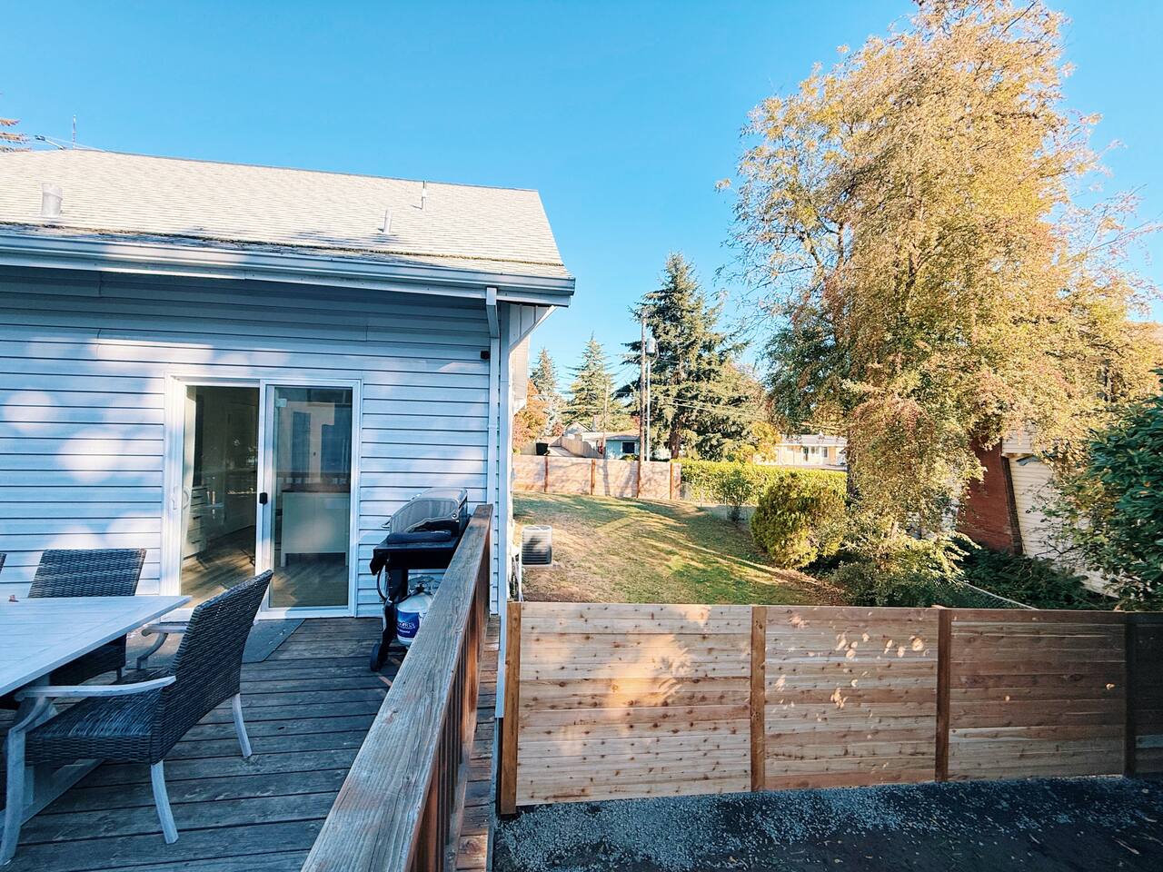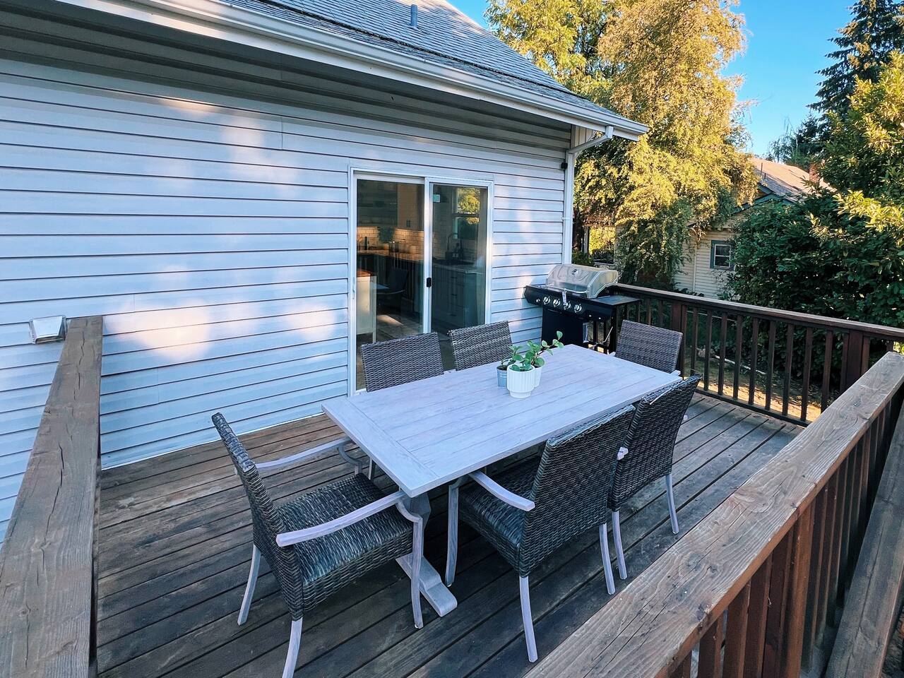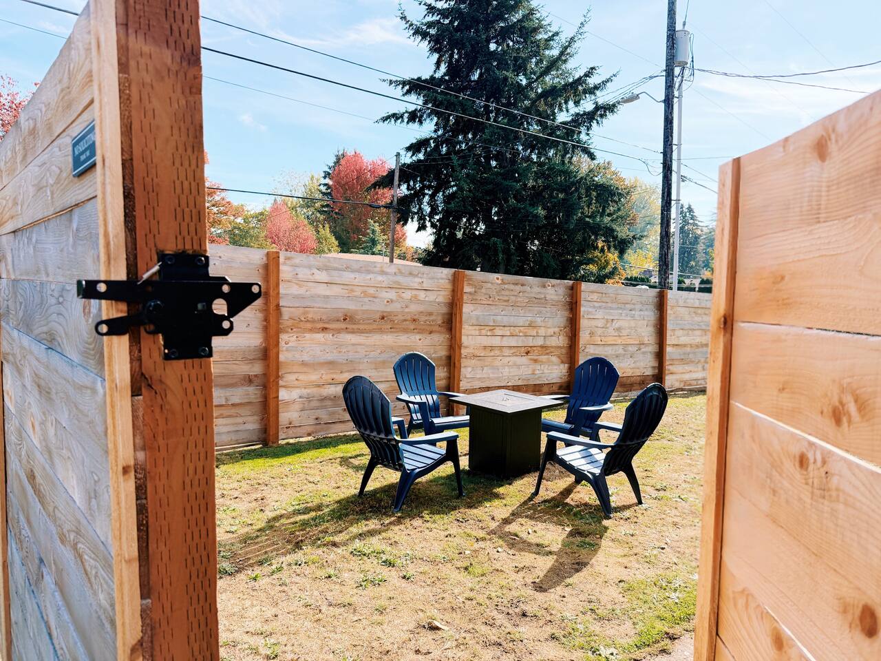 The main floor features a cozy bedroom and a full bathroom for easy access. Upstairs, you'll find two additional bedrooms, including a master suite with a king bed for ultimate comfort. There is a TV in every room for your enjoyment. The outdoor space is fully fenced, providing a safe area for play, relaxation, and even your pets use. Enjoy a BBQ on the patio, making the most of this delightful and functional outdoor area.