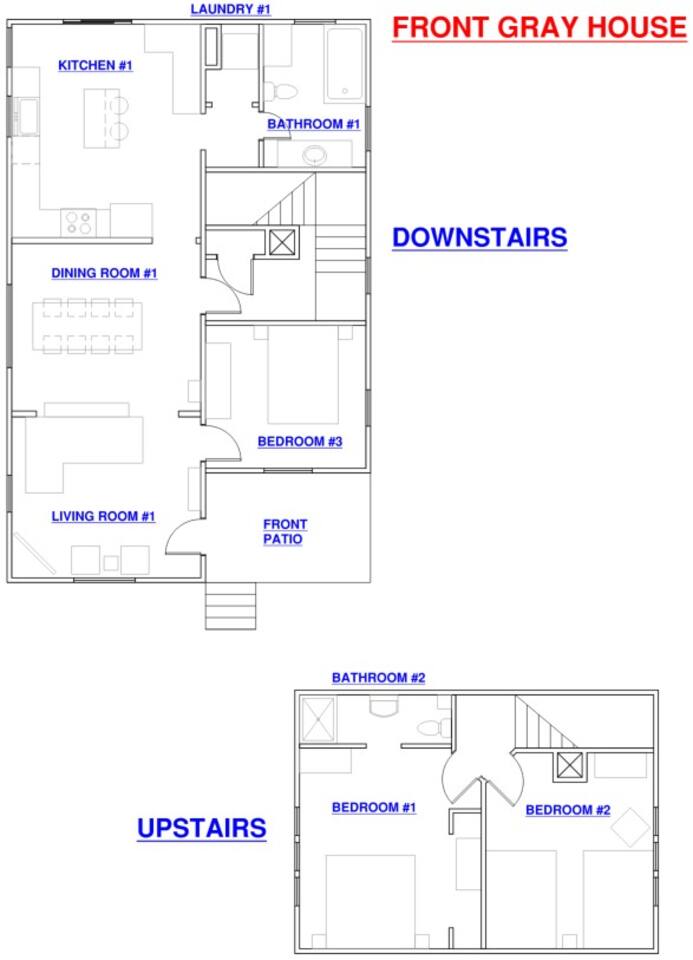 Guests have access to both homes and the entire property. The Front (Gray) House is fully fenced, making it perfect for pets to run around. The Back (White) House is partially fenced, but has a large grass yard, perfect for family games and/or entertainment!