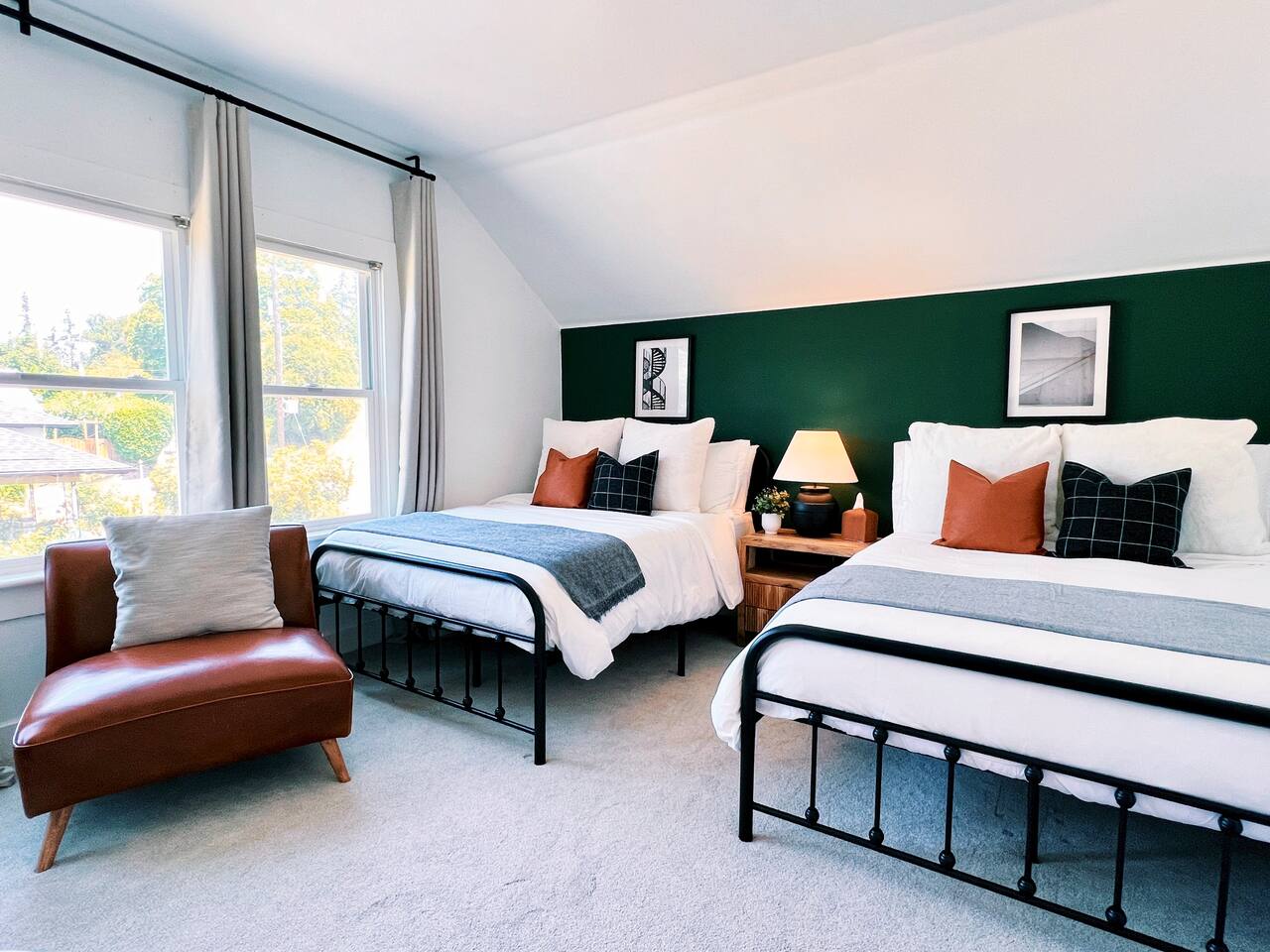 Welcome to our half-acre property with TWO stunning homes! A renovated 1920s charmer and a custom 2024 build. Each has its own entrance, parking, yard, kitchen, living space, and full amenities. With 5 bedrooms and 4 baths, we sleep 14 comfortably making it perfect for family gatherings or group getaways! Just 15 mins from downtown Portland, in a quiet peaceful suburb near coffee shops, breweries, and Trader Joe’s, you get the best of both worlds! We'd love to host you at our special property!